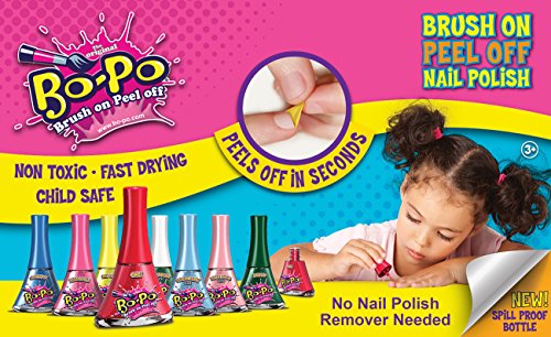 Bo-Po Brush On, Peel Off Nail Polish - the 1980's sensation is back and better than ever. Bo-Po nail polish is safe, non toxic and child friendly. It's a do it yourself activity - no nail polish remover required. Incredible new spill proof container. This set of 8 assorted bottles of Bo-Po comes with Yellow polish which is only available in this set. Moms and Grandmas might remember this polish from the 1980's know as Tinkerbell Bo-Po. Safe for children ages 3 and up. Winner of the 2013 Dr. Toy's Best Classic Toy. This polish is fully compliant in both the US and Canada.Feature