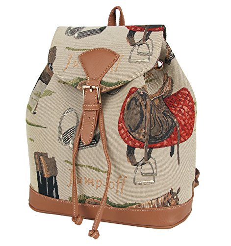 Signare Womens Tapestry Small Flap Buckle Rucksack Backpack in Horse Design
