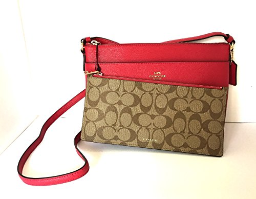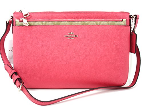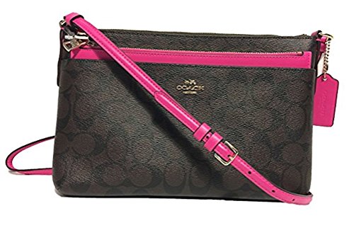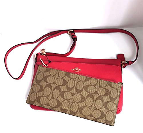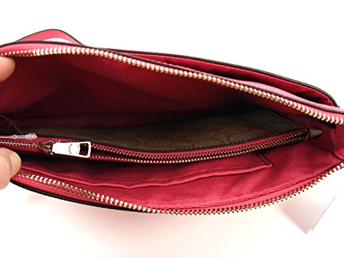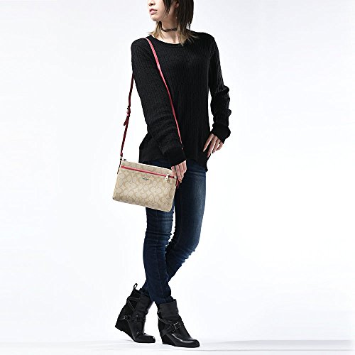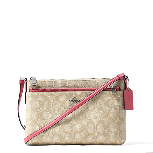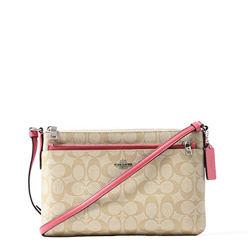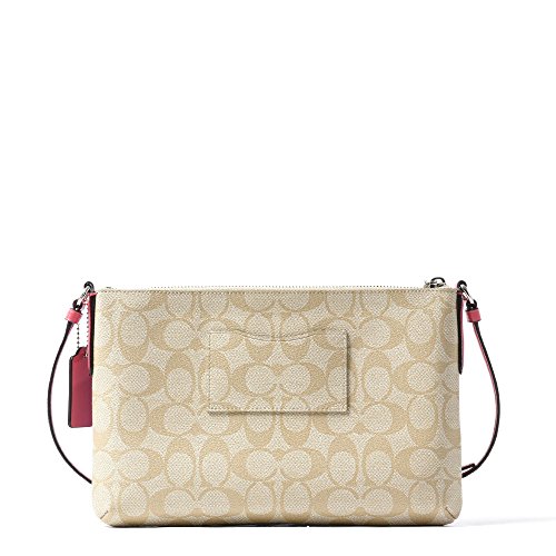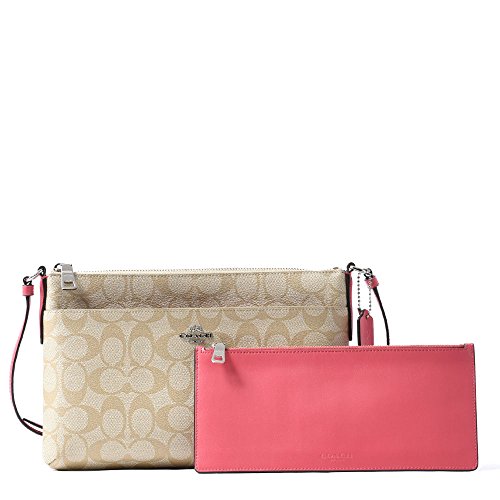 COACH Signature E/W Crossbody with Pop-Up Pouch in Khaki/Bright Pink, F58316