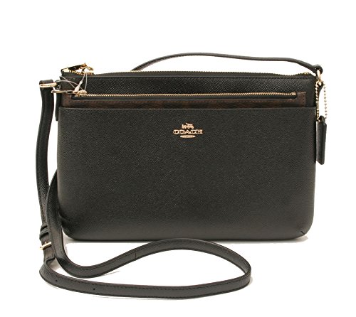 COACH Crossgrain Leather E/W Pop Crossbody (Black)
