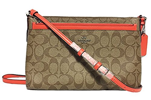 COACH Crossgrain Leather E/W Pop Crossbody (SV/Khaki/Bright Orange)