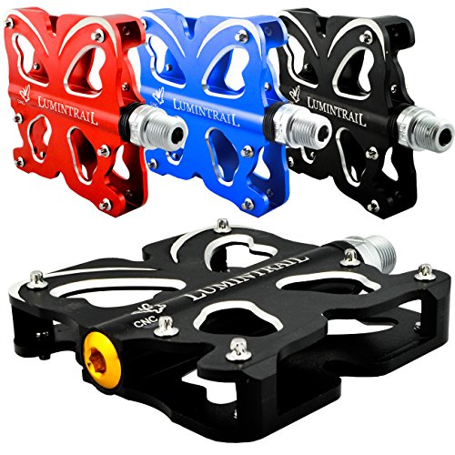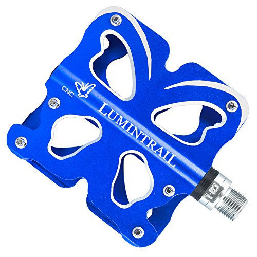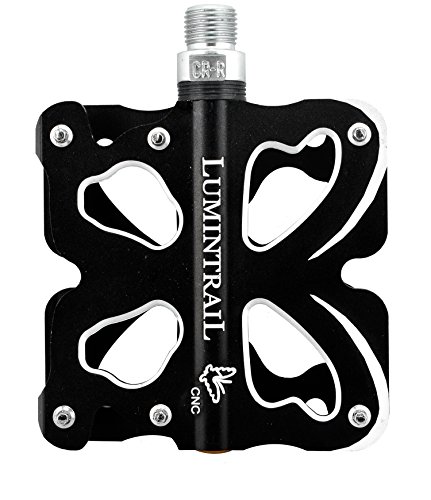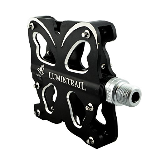 This stylish platform pedal is a high working performance bike pedal. Strong and durable, these dual sided pedals are designed with non-slip steel pins to provide superior grip and pedaling efficiency. With sealed bearings and crafted of solid and lightweight CNC machined aluminum alloy the Lumintrail pedals provide a long lasting and durable component to your bike.