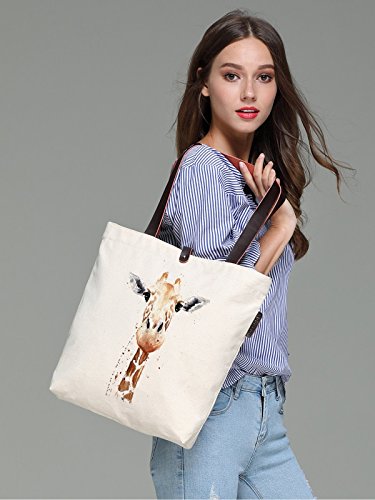 So'each Women's Animal Giraffe Art Graphic Canvas Handbag Tote Shoulder Bag