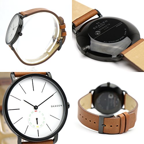 SKAGEN 스카―겐 남성용 손목시계 SKW6216 HAGEN 하겐 브라운 레더 벨트 울트라 슬림 맨즈 워치 초박형 경량 심플 스몰 세컨드 블랙 실버 [병행