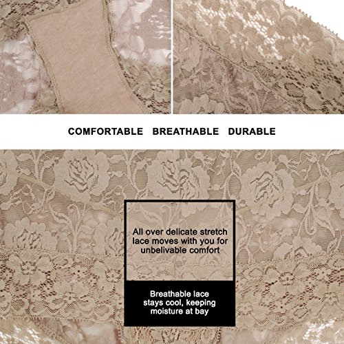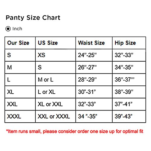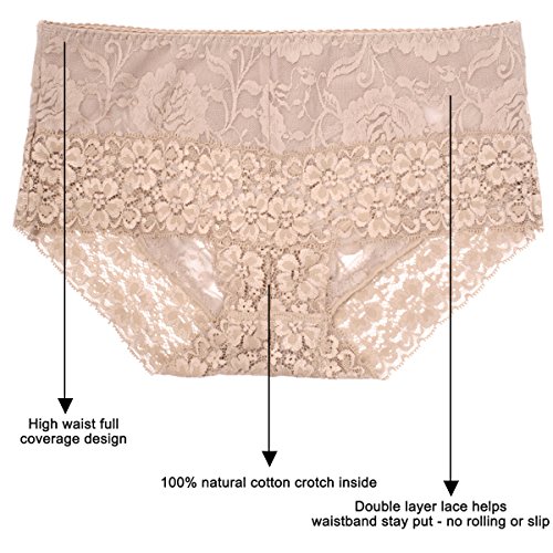 -. Feature : MID RISE: This lace underwear is mid waist, lightweight sexy underwear for women with stretch lace. Full back coverage. Perfect sexy lingerie for women. Comfortable to wear from day to night. / LUXURY LACE: Semi-sheer luxuriously soft and stretchy lace offers breathable feel and sweat-free comfort. 6 assorted colors: sexy black, pink, red, nude, white and purple. These mid waisted underwears are the best panties for women. Lace pattern designed by top French designers. / FITTING: Item runs small, order one size larger than your normal size for optimal fit. Available size: S, M, L, XL. Our stretchy luxury lace makes it the perfect plus size lingerie panties for women. Conceal any bulges or bumps for a smoother, slim, seamless appearance under your garments. / MATERIAL: Crotch: 100% cotton; Lining: 84% nylon, 16% spandex; Flower lace embroidery: 79% nylon, 14% spandex , 7% polyester. / CARE: For these sexy panties, machine washable using laundry bag. Hand wash is recommended.