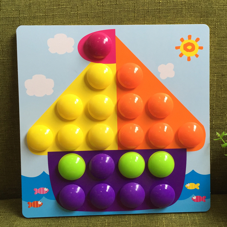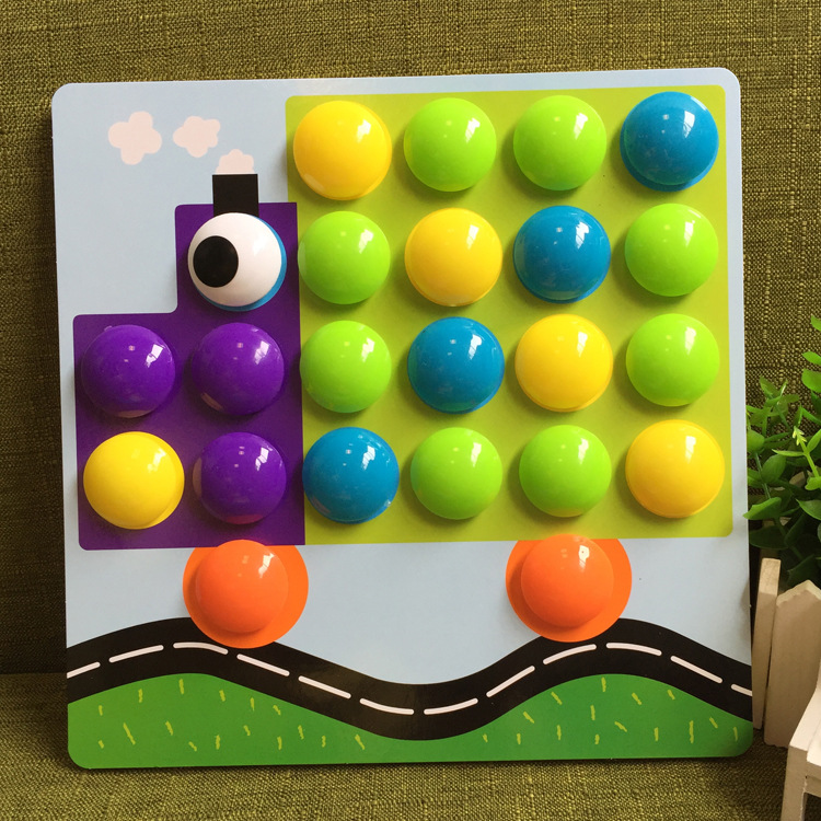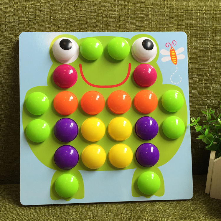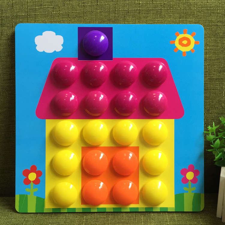 1 and a half years old children do not need to think about how to build frogs, birds, houses, cars, books, these patterns, light press, pull, pull, pull out these mushroom nails, you can play for a while.