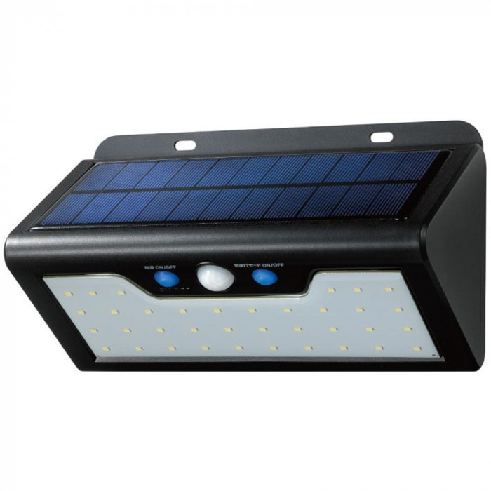 | 暗い時にセンサーが人や車の動きを検知して自動点灯します。屋外に設置できる防水仕様で、ソーラー発電式なのでコンセントがない場所に設置できて、電気代もかかりません。周囲が暗くなると自動で点灯する常夜灯モード搭載(ON/OFF切替可能)。 |