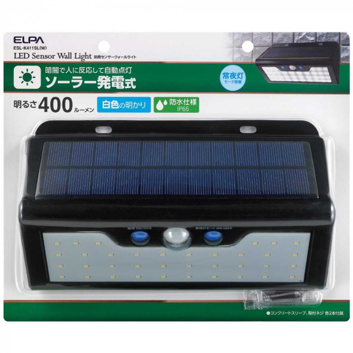 | 付属品 | 取付ネジ2本(φ4×25mm)、コンクリート用スリーブ2本(φ5.8×23.6mm)、取扱説明書兼保証書(保証期間1年) |