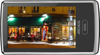 The ARCHOS 3 vision screen is big and bright enough to show off your best photos and videos?? but the device will still fit into your pocket. The touchscreen interface boasts a virtual scroll dial that lets you quickly zip through long lists of music files.