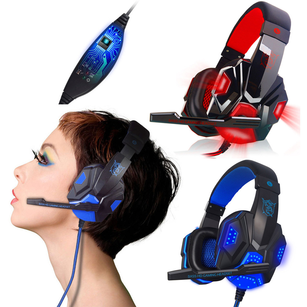 Adroit Surround Stereo Gaming Headset Headband Headphone USB 3.5mm LED with Mic for PC JAN25