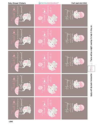 Lip Balm Labels Gray Elephant Set of 45 (Pink)