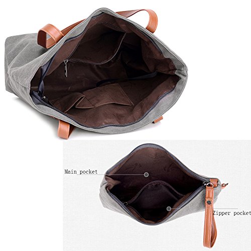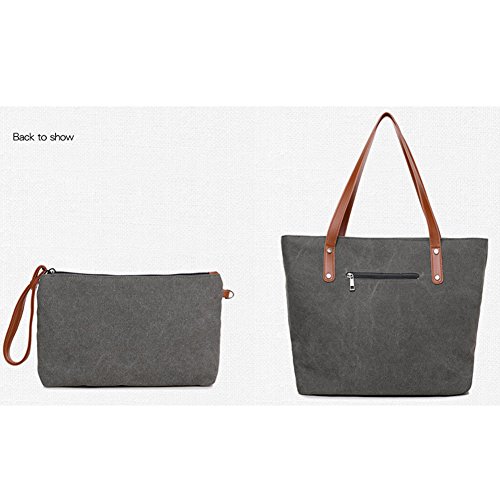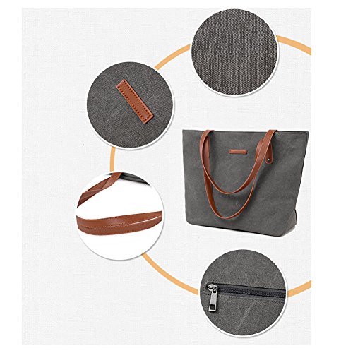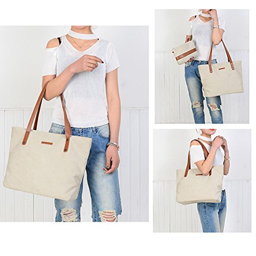 KARRESLY Women Casual Canvas Shoulder Bags Large Capacity Work Travel Beach Tote Handbag + 1 Wallet