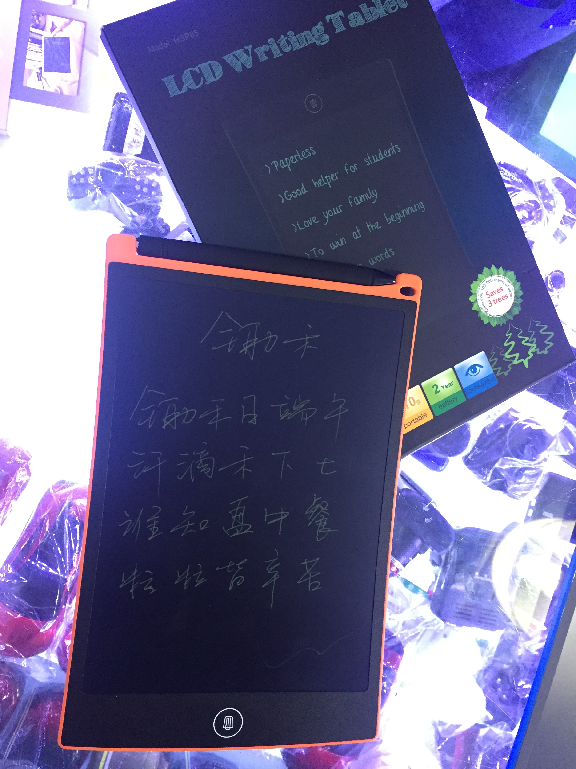 7. Ultra-thin (4.5mm only) LCD writing board for list, notes and graffiti without paper;pressure-sensitive screen allows you to create thick lines