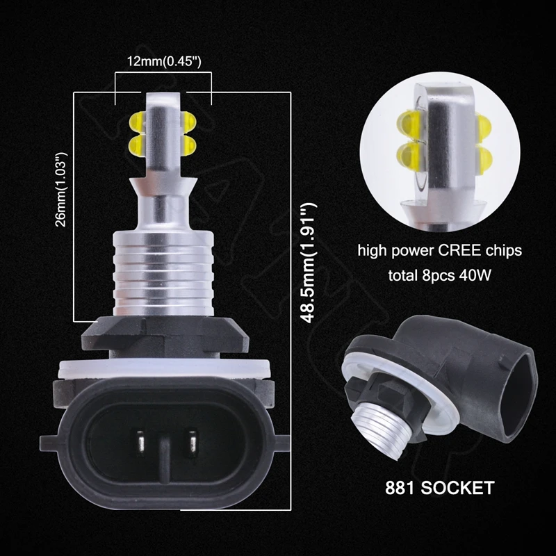 Application:881 Socket for Fog Light , DRL or other lights but not for Headlight .