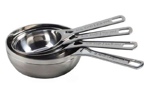 - 4 piece set includes: 1/4, 1/3, 1/2, and 1 cup sizes