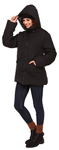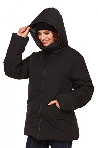 Binding : Apparel Product Description Keep your elegance throughout pregnancy with Happy Mama Boutique maternity collection! Flatter your bump and new curves in this gorgeous padded jacket with removable insert, cleverly designed to accommodate your new curves or to create enough space for carrying your baby in a wrap sling. Incredibly simple and yet effortlessly stylish, this fabulous maternity coat with hood is made in soft padded fabric, which feels fantastic against sensitive skin, and is designed to grow with your changing curves. Casual maternity jacket from a warm fabric. Regular fit.