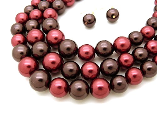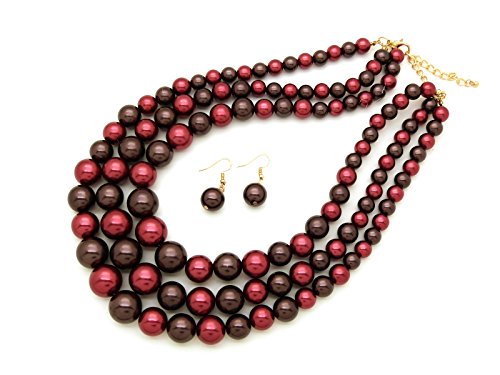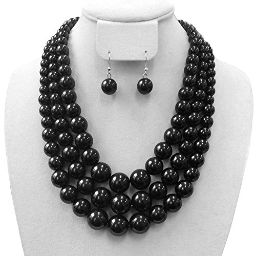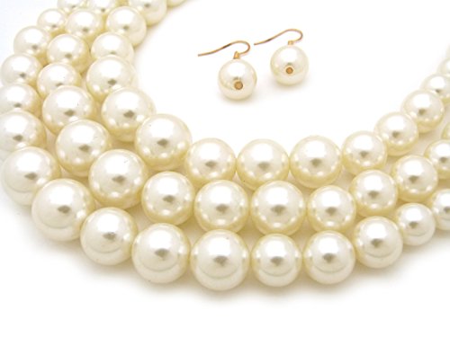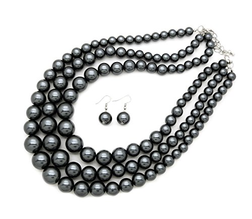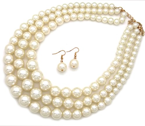 -. Feature : Women's Simulated Faux Three Multi-Strand Pearl Statement Necklace and Earrings Set / Necklace: 18.5" + 3.0" extension / Pierced earrings: 1.45" x .5" / Fashion Costume Jewelry / Lead & nickel compliant