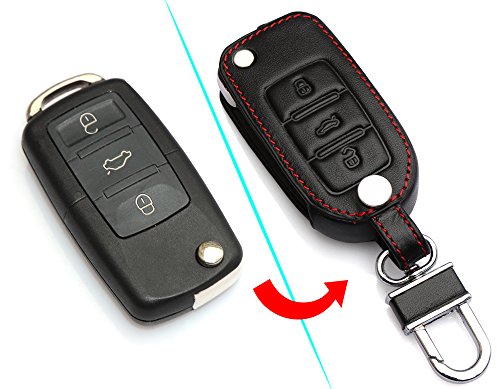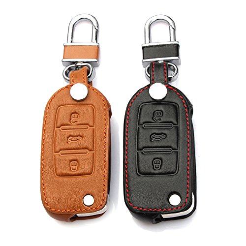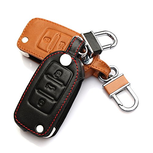 AndyGo® Leather Key Cover Case Bag Keyless For Volkswagen Tiguan Vw Jetta Mk6 Golf Polo Passat Cc Bora Skoda Fabia Octavia Superb