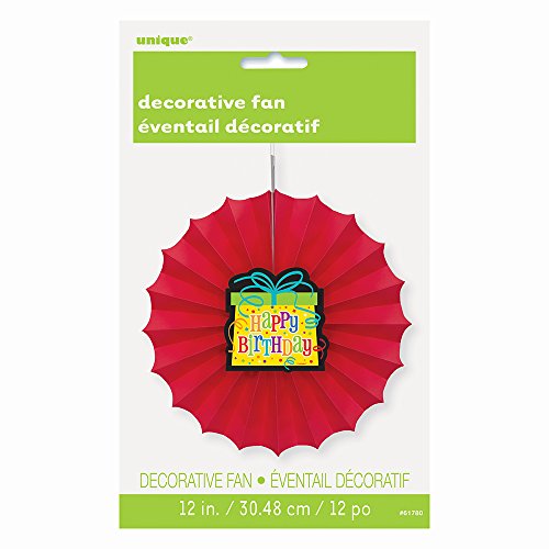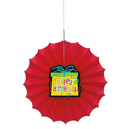 Studio : Unique Publisher : Unique Binding : Kitchen Product Description Add a splash of color to the birthday celebration with this Happy Birthday Tissue Paper Decorative Fan. This vibrant red fan decoration features a cutout of a birthday present with “Happy Birthday” in lively letters, making it an excellent piece of decor for any birthday party. This Happy Birthday Tissue Fan has an adhesive to keep it opened and string attached, so hanging it from the ceiling couldn’t be easier. 0