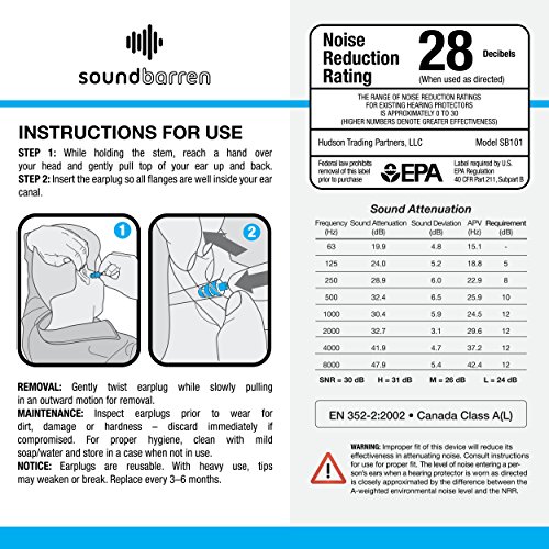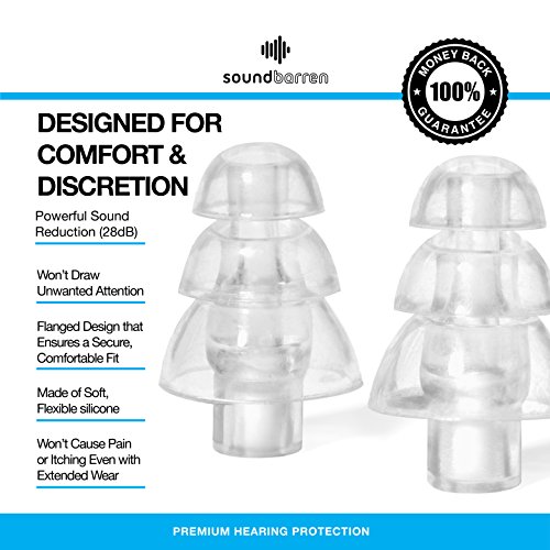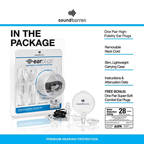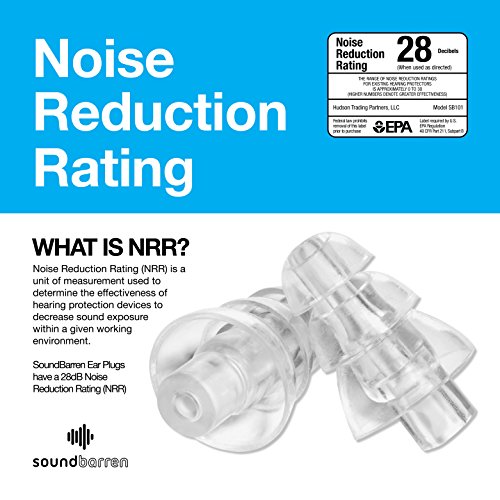 SoundBarren Ear Plugs, 1 Reusable Pair, 28dB Hearing Protection Earplugs for Sleeping, Snoring, Shooting, Concerts, Musicians, and Travel