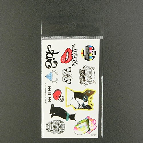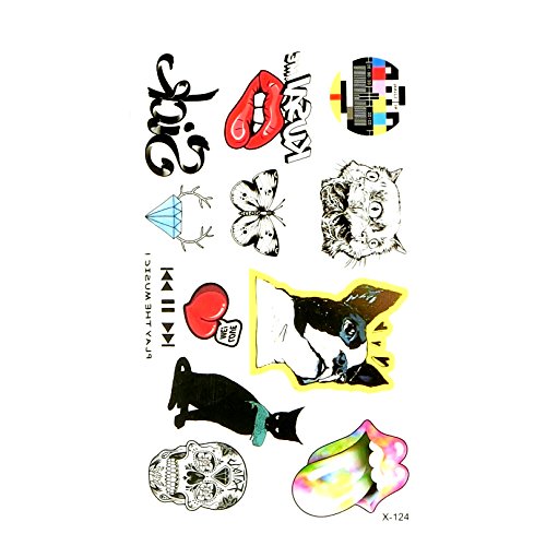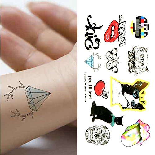 Oottati Small Cute Temporary Tattoo Dog Cat Mouth Butterfly Diamond Skull (2 Sheets)