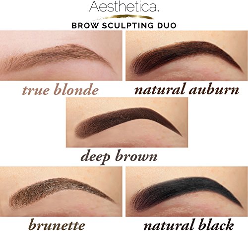 The Aesthetica Brow Sculpting Duo helps you expertly blend and set natural color into sparse or weakly shaped brows. The double-ended pigment and clear gel adhere to skin and hair for a well-defined, flawless finish.