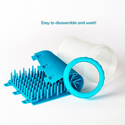 NEVER TRACK MUD/DIRT INTO YOUR HOUSE/VEHICLE AGAIN: Perfect for larger breeds like Labs, Poodles, German Shepherds, Australian Shepherds, etc, this ultra gentle dog paw cleaner will remove dirt and mud from your pet's paws keeping the mess in the DirtyDog Paw Cleaner and not in your house! Rest assured you're happy dog will go outdoors, play in the park, run and walk, because the soft silicone brush will quickly remove dirt from the dog's paws.