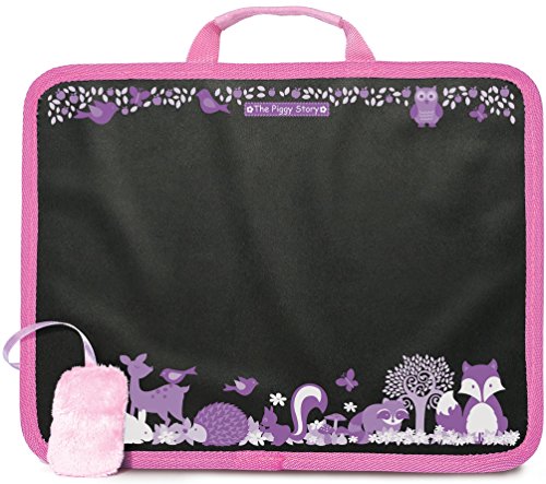 Chalk N Doodle is more than simply a chalk board & chalk. It's actually two items in one! Use it as a chalk board or as a convenient lap desk. A sturdy carry handle, two side flaps to keep chalk or crayon's handy and a lap cushion make it perfect for traveling and that artist on the go. Includes 6 pieces of colored chalk and a chalkboard eraser with a closeable flap to keep everything in its place. There is even a wonderful themed design on the chalk board to help inspire the young artist. The Piggy Story is a manufacturer of gift, travel and accessory products for children. Each original story pattern starts with a drop of imagination and then is artfully drawn into a colorful fabric that captures a story to spur imagination and creativity. Parents appreciate that every product is affordable, durable and practical. The Piggy Story - Designed To Capture Young Imaginations!.Feature