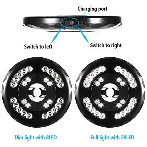 - 2 Levels Brightness (28LED/8LED): Turn on dim light with 8 Led, or full light with 28 LED to set brightness for nightly outdoor activities.