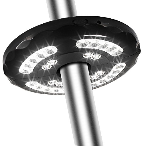 - Simply Installation, Cordless design with built-in flexible auto adjustable clamp, no tools required, just need to clamp to your sunshade, Pole mounted fit pole size from (0.78in to 2.04in) in diameter, suitable for most patio umbrellas.
