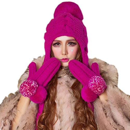 Product Description Condition:new Product category: knitted scarf hat Color: rose red; Size: Medium material: acrylic fiber Applicable gender: women Cap style:beanie Suitable for season: winter, autumn,spring; Package:1*scarf hat