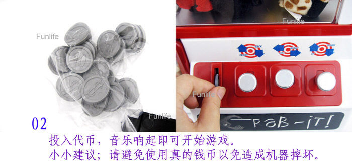 Tips: please avoid the use of real coins, so as not to cause damage to the machine.