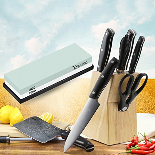 Sharpening Stone, Yododo Whetstone Sharpening Stone 1000/4000 Grit - Yododo Knife Sharpener Stone - Waterstone Rubber Stone Holder Included