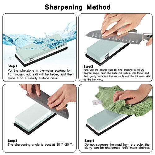 - ▲SUPERIOR BUNDLE: with double sided (#4000/ #1000) premium quality whetstone, knife sharpening angle guide, a simple instruction manual & detailed eBOOK with lots of TIPS & TRICKS which will appeal at every skill level.