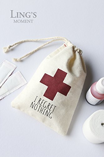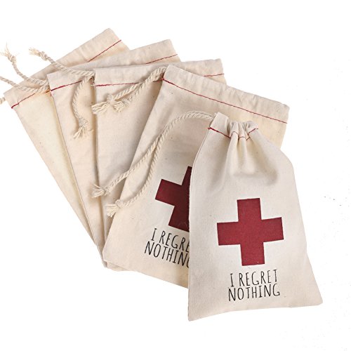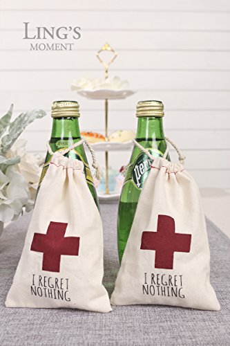 Ling's moment 10pcs 4”x6” I REGRET NOTHING Cotton Muslin Favor Bags Vintage Bachelorette Hangover Kit Bags Recovery Kit Survival Kit Bags...