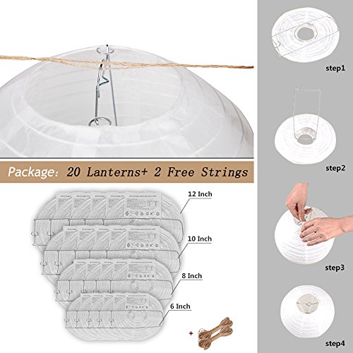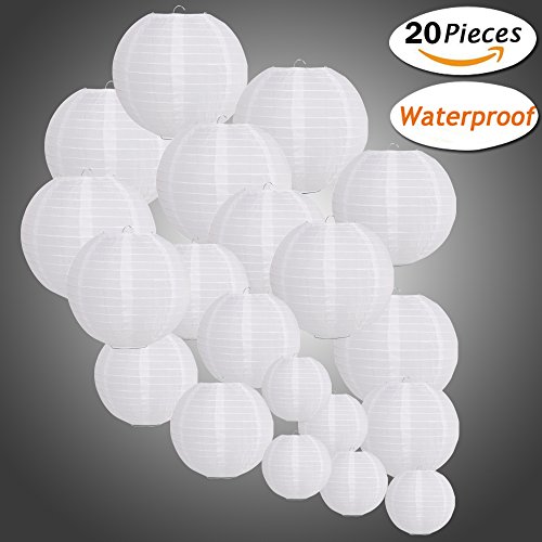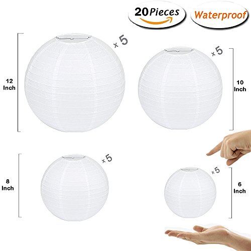 Waterproof Chinese paper lantern White Lantern Outdoor and Indoor Decorative Lantern for Halloween Birthday Wedding Baby Showers Party 20 packs Various sizes