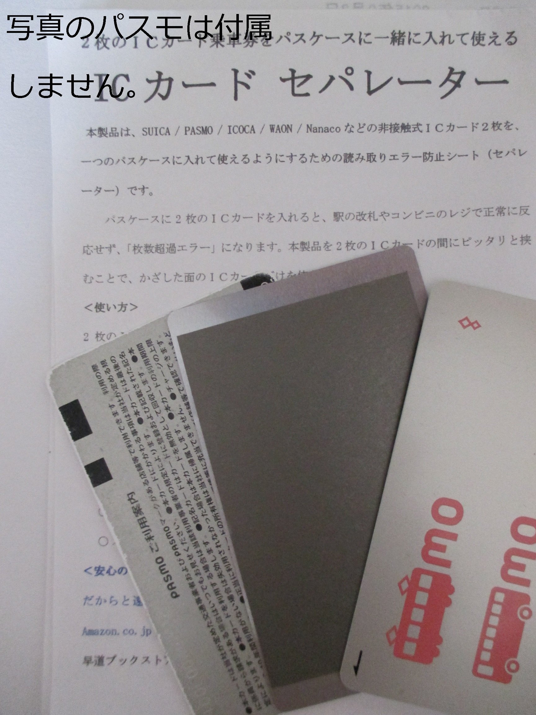 This product is a reading error prevention sheet (separator) to make it possible to use two contactless IC cards such as SUICA / PASMO / ICOCA / WAON / Nanaco in one pass case.