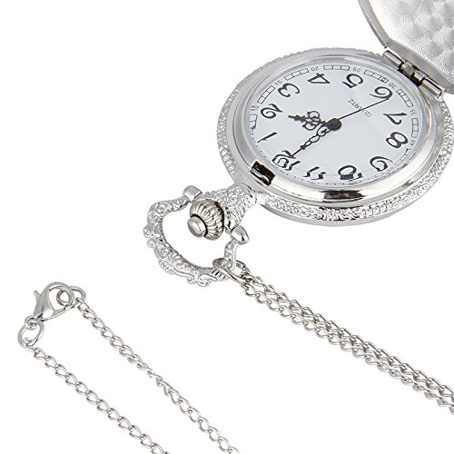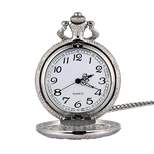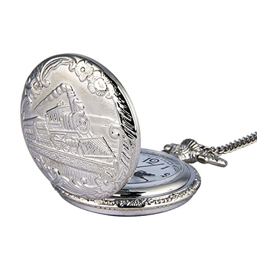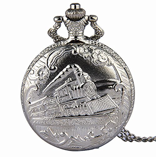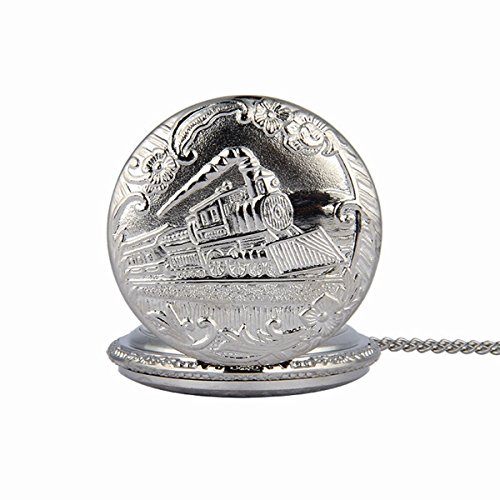 -. Title : Picvadee Unisex Antique Case Vintage silver RIB Chain Quartz Pocket Watch Train NT003