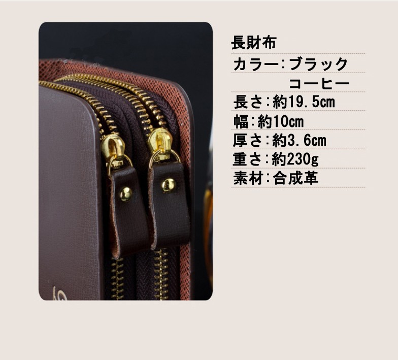 メンズ用長財布カラー:コーヒー・ブラック本体サイズ:約19.5cm×10cm×3.5cm仕様:札入れ、カードポケット、フリーポケット素材:合成革キーワード:男性用財布 プレゼント 贈り物 バッグ 財布メンズ さいふ サイフ 札入れ ギフト 人気 長財布 メンズ 財布 ダブルファスナー 大容量 カーボン デザイン フェイクレザー ラウンドファスナー 財布 人気 プレゼント 送料無料