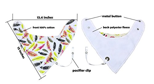 FASHIONABLE, STYLISH AND COMFORTABLE- With pacifier clip,neutral patterns look great on both boys and girls. Cute patterns all babies will love it, 4- 1 set for moms can replace it timely if bibs wet.