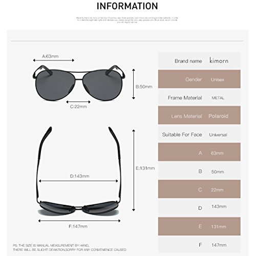 Kimorn Polarized Sunglasses Unisex Pilot Style Metal Frame Sun Glasses K0583