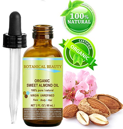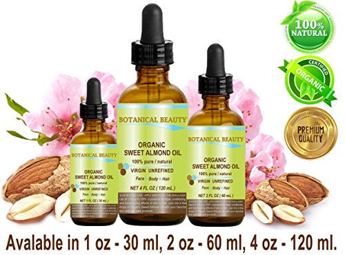 -. Title : ORGANIC SWEET ALMOND OIL 100% Pure / Virgin / Unrefined Cold Pressed Carrier Oil. 2 oz-60 ml. For Face, Hair and Body.