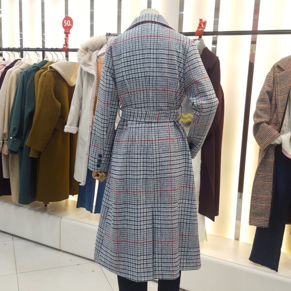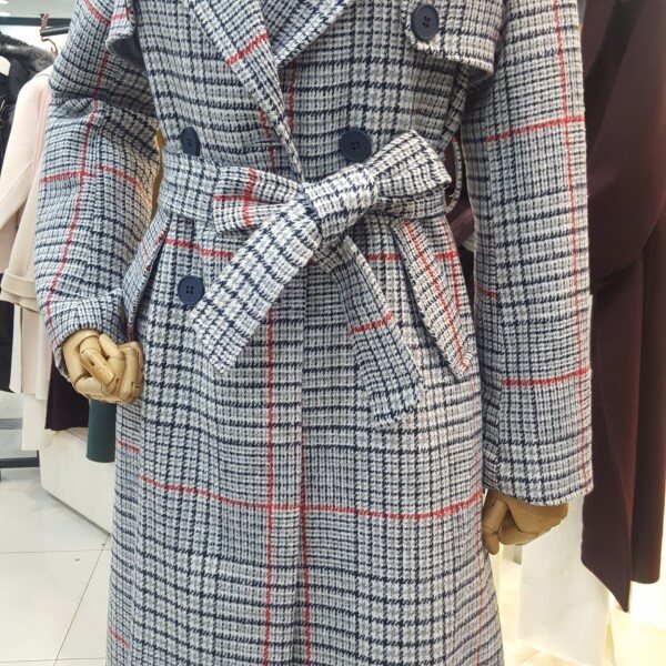 잔체크 더블버튼 트렌치형 롱 코트입니다.벨트로 허리라인을 잡아줄수있으며 멋스럽고 스타일리쉬하게 시크하게 연출 가능한 아이템입니다.정장,캐주얼 모두 코디하셔도 멋스러운 제품입니다.