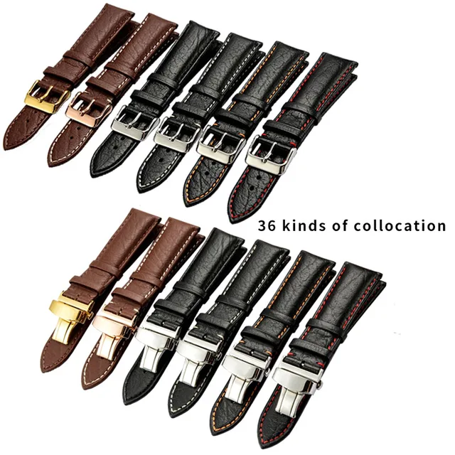 | [해외]높은 품질의 손목 가죽 남자 20 미리메터 22 미리메터 시계 스트랩 밴드 butterfly 버클 omega tissot seiko casio 여성 + 도구 |