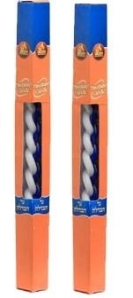 Havdalah Candle Round Blue and White Hand Made - 2 Pack