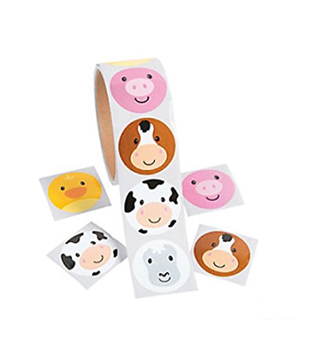 -. Title : FARM FACE ANIMAL STICKERS - ROLL OF 100