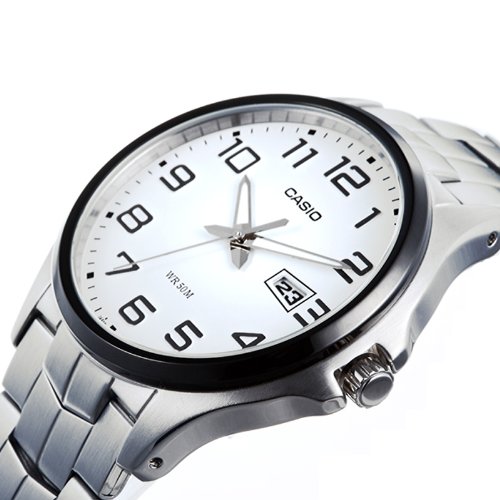 -. Title : Casio Men's MTP1319BD-7AV Silver Stainless-Steel Quartz Watch with White Dial