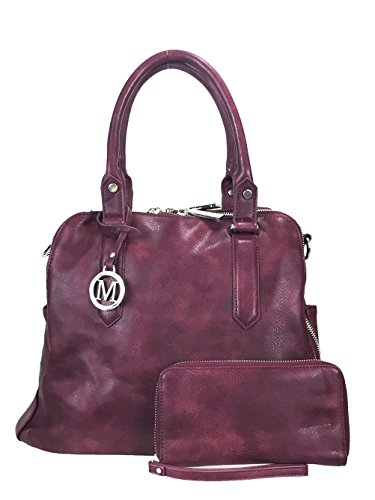 -. Title : Zzfab Leatherette Triple Compartments Satchel Purse and Wallet Set