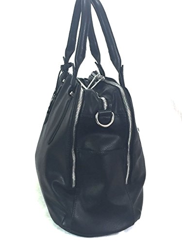 -. Feature : quality synthetic leather feel like cow leather, light gold color hardware for brown color and silver color for the black and grey bag. / Zip top close. ( All three compartments have outer zippers ! ). Very well made and good craftsmenship, looks like a high end leather purse / back zipper pocket. Slot pocket in both end for your Phone and small stuff. Wall zipper pocket and cell pouches in middle compartment. Double handle, Extra shoulder strap. / Purse size: 14 x 11 x 6.5, double shoulder strap drop: 6.5, long shoulder strap drop 25" same big space in all three compartment, can fit 13" laptop, iPad and kindle no problem. And much more. / Unique design no duplicate from other shop. Ship from US