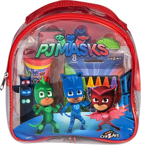 This Cra-Z-Art PJ Masks Activity backpack is packed with endless PJ Masks arts, crafts and drawing activities to keep busy. Includes markers, stamps, softee dough, coloring book, activity pad, peel & stick tissue paper art and much more! Also allows for easy storage and is perfect for on the go!Feature
